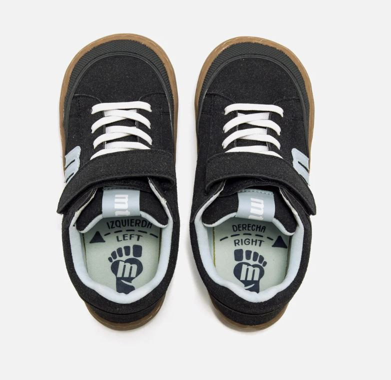 Zapatillas respetuosas Free de color azul marino para niño de la marca Mustang. Con detalles en azul claro y suela caramelo, este modelo combina funcionalidad y estilo informal. El cierre adhesivo y los cordones elásticos facilitan el calce. Diseñadas y desarrolladas especialmente en colaboración con el Dr. Juanjo López, traumatólogo deportivo, para respetar el desarrollo natural del pie. Se trata de un calzado minimalista que gracias a su puntera ancha, suela totalmente plana (cero drop) y flexibilidad, mejora la anatomía del pie y favorece una mejor posición del mismo. Se vende con una plantilla de transición para hacer el cambio de calzado convencional a minimalista de manera progresiva. Con certificado VEGANO sellado por INESCOP, el cual garantiza que la naturaleza química principal del material no se corresponde con fibras de origen animal.