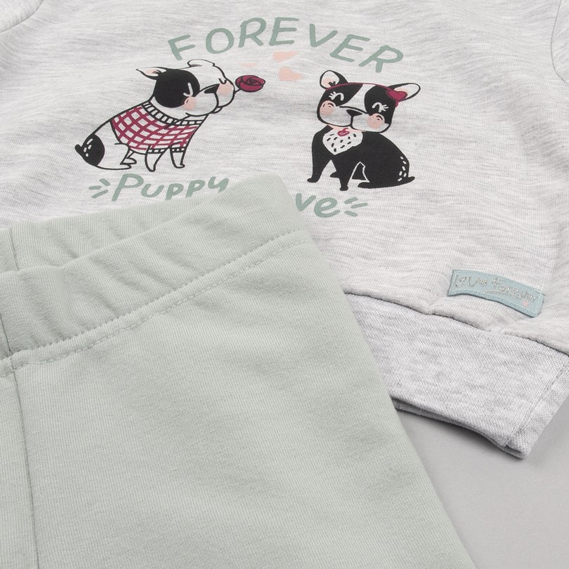Conjunto niña Babybol sudadera perros + leggins verde