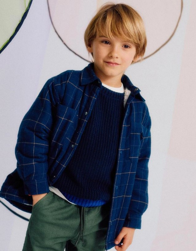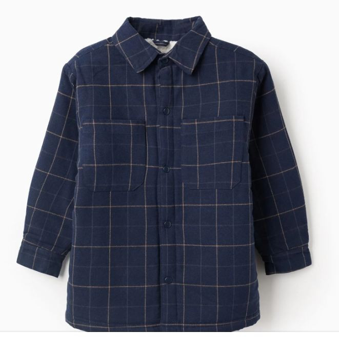 Sobrecamisa de franela en tono azul con cuadros finos. De tacto suave y cálido, es perfecta para usar como capa ligera o como chaqueta informal. Incluye bolsillo en el pecho y cierre con botones delanteros. Ideal para combinar con camisetas o jerséis y crear un look cómodo y moderno para el día a día.