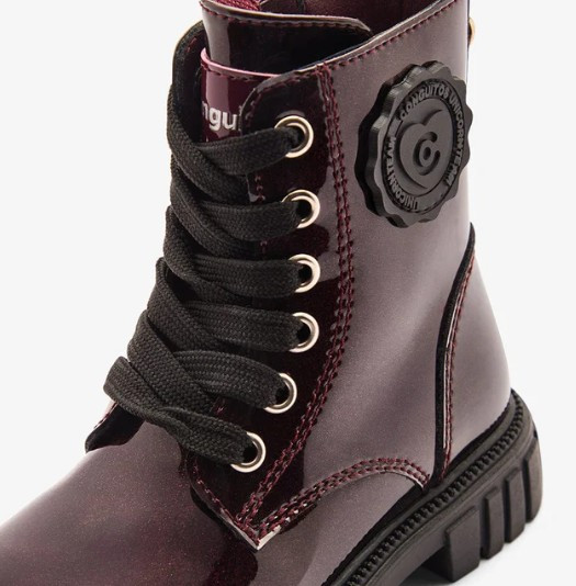 Las Burgundy Military Patent Boots son unas botitas con mucha personalidad y un toque brillante que no pasa desapercibido. Su acabado charolado en color burgundy les da un aire moderno y fácil de combinar, perfectas para los primeros pasos con estilo.
