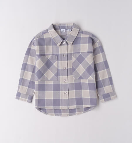 Camisa iDO para niña de 3 a 8 años, confeccionada en sarga 100 % algodón color melocotón. Cierre de botones, bolsillos delanteros y estampado de cuadros. Con forro de algodón.