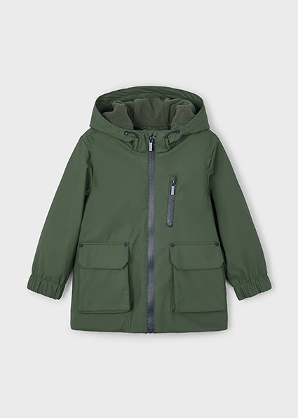 Un abrigo práctico y moderno para proteger a los peques en los días más fríos. Confeccionado en color azul marino, combina estilo y funcionalidad gracias a su diseño con capucha integrada y cierre de cremallera frontal. Incluye bolsillos grandes de solapa y uno con cremallera en el pecho, perfectos para llevar pequeños objetos o mantener las manos calentitas.
