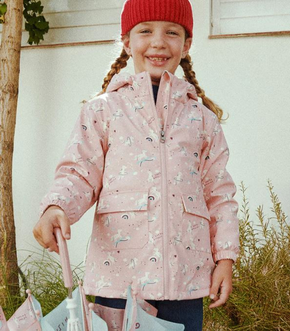 Este impermeable para niñas combina funcionalidad y diseño en una prenda ligera y cómoda. Fabricado en material resistente al agua, con capucha integrada y cierre de cremallera, protege eficazmente de la lluvia mientras permite total libertad de movimiento.