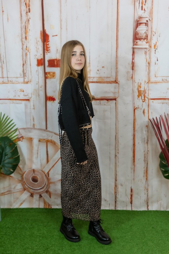 Dale un toque salvaje y femenino a tu look con esta falda midi de tul con estampado animal print de la marca Tiffosi. Su tejido ligero y vaporoso crea un movimiento elegante al andar, mientras que la cintura elástica asegura un ajuste cómodo y favorecedor.