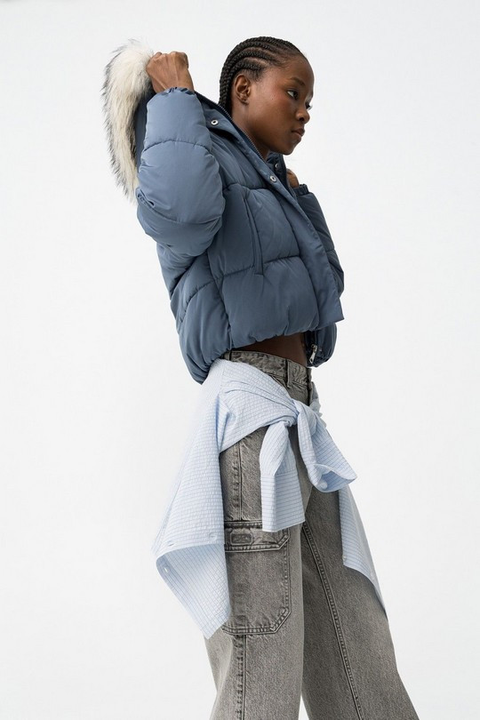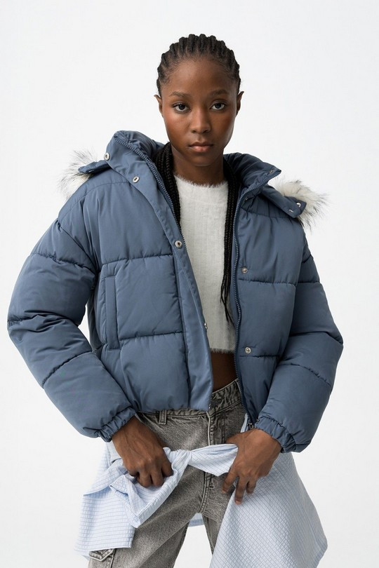Este plumífero es la mezcla perfecta entre estilo y confort. Con un diseño corto y acolchado, abriga sin perder ligereza. La capucha con borde de pelo sintético desmontable le da un toque versátil ideal para combinar con cualquier look. Disponible también en azul, para quienes buscan un básico con un punto de color.