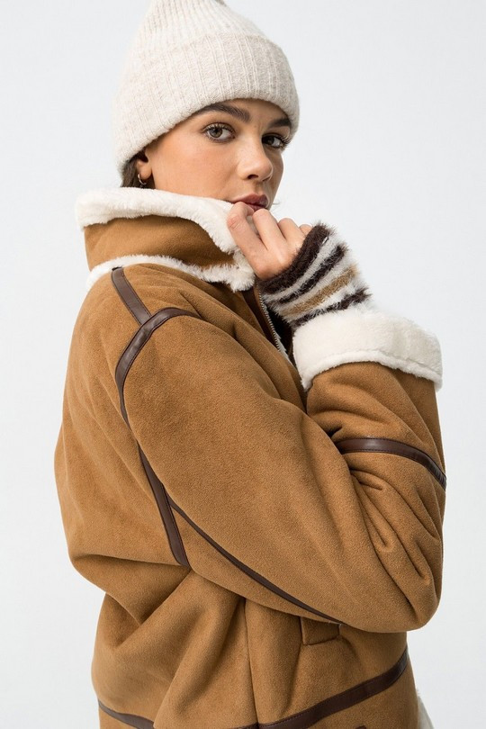 Calidez y estilo en una sola prenda. Esta cazadora de efecto ante con interior de borreguito es un clásico reinventado que aporta un toque cozy y elegante a cualquier look. Con detalles en contraste y un corte amplio, es perfecta para los días fríos de invierno. Ideal para combinar con vaqueros o pantalones amplios y crear un look relajado pero con mucho carácter.