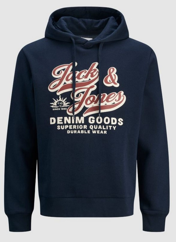 Sudadera con capucha confeccionada en suave tejido de algodón. Presenta un estampado frontal con el logo Jack & Jones en estilo retro, bolsillo tipo canguro y ajuste con cordones. Ideal para un look casual y cómodo del día a día. Perfecta para combinar con vaqueros o joggers.
