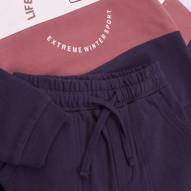 Este conjunto para niño es perfecto para los días más activos del invierno. Incluye una sudadera con capucha de diseño a bloques de color (blanco, terracota y morado) con mensaje frontal Life is better on the snowboard Extreme Winter Sport y pantalón jogger a juego en color morado, con cintura elástica y cordón ajustable para mayor comodidad.