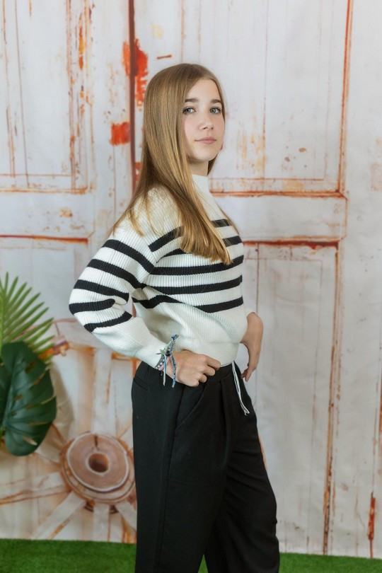 Suéter niña iDO 10-16 Años confeccionado en tricot elástico con rayas.