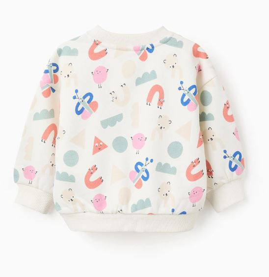 Sudadera de manga larga para bebé confeccionada en algodón suave y cálido, perfecta para el uso diario. Presenta cuello redondo y acabados en canalé en puños y bajo para un mejor ajuste y comodidad.