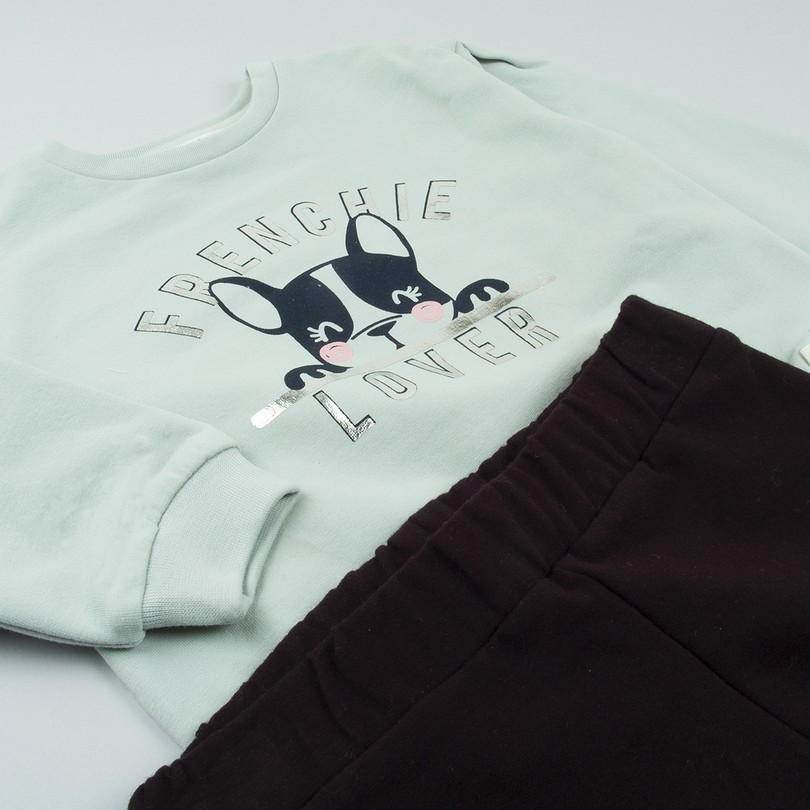 Sudadera de manga larga en color verde menta con divertido estampado de perrito y la frase Frenchie Lover. Su tejido suave y cálido es perfecto para los días más frescos.