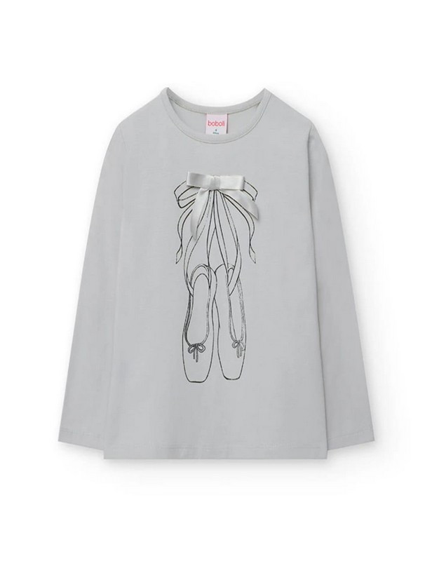 Color gris claro con estampado delantero de zapatillas de ballet y un bonito lazo de raso aplicado que aporta un toque delicado y femenino.