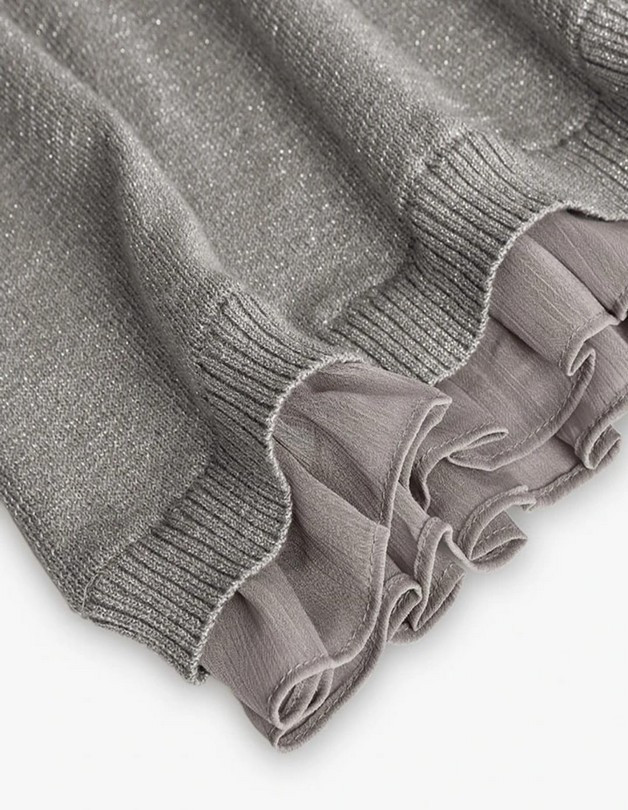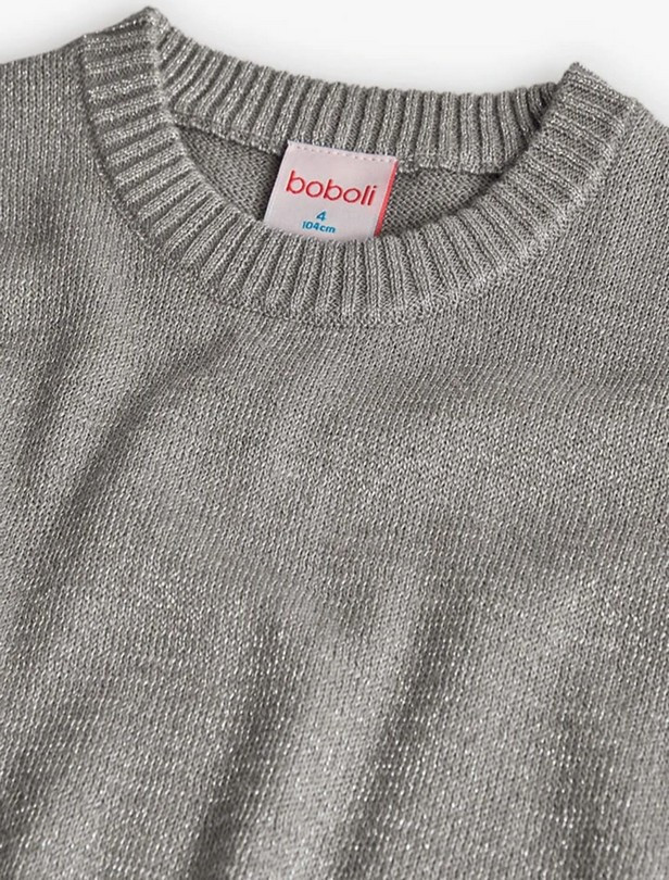 Confeccionado en punto suave de color gris con un ligero brillo, que aporta un toque sofisticado.