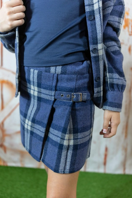 Falda iDO para niña (10-16 años), confeccionada en sarga forrada con tacto melocotón. Cierre de cremallera lateral y estampado de cuadros. Modelo plisado. Cintura ajustable con elástico interior con ojal. Largo mini.