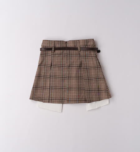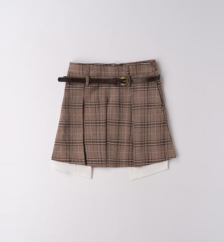 Falda iDO para niña (10-16 años), confeccionada en sarga con forro de algodón. Cintura ajustable con elástico interior con ojal. Cierre con cremallera invisible. Largo hasta medio muslo. Cinturón a juego.