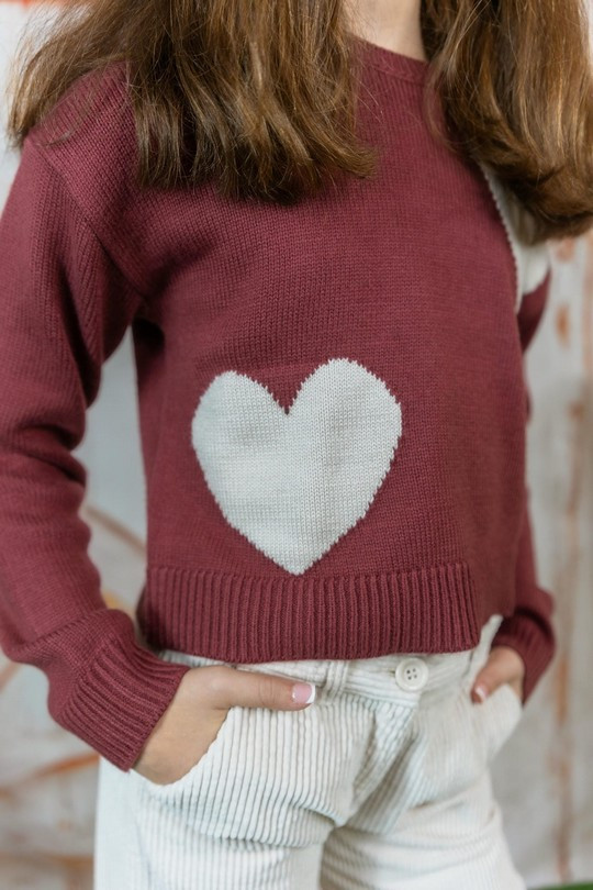 Suéter Niña iDO 3 a 8 Años confeccionado en tricot 100% algodón con detalle de corazonesl.