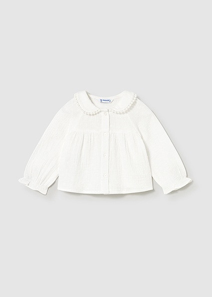 Opción en blanco liso con cuello bebé bordado.