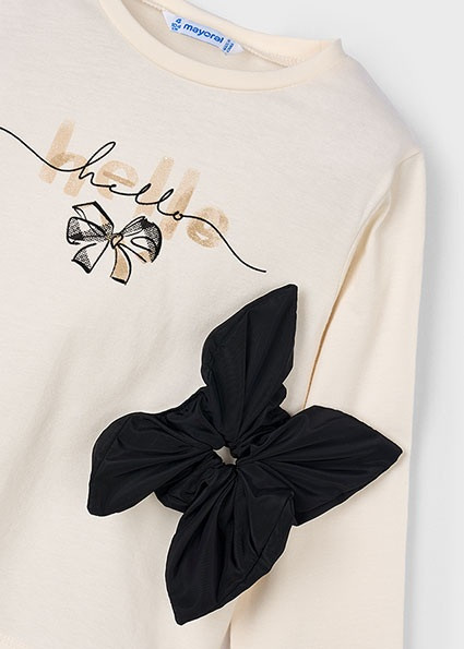 Un detalle que marca la diferencia. Esta camiseta con estampado incluye un coletero a juego, creando un look completo, tierno y práctico.