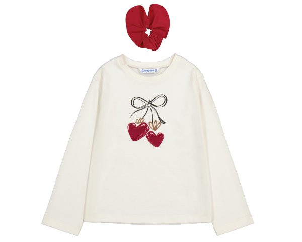 Un detalle que marca la diferencia. Esta camiseta con estampado incluye un coletero a juego, creando un look completo, tierno y práctico.