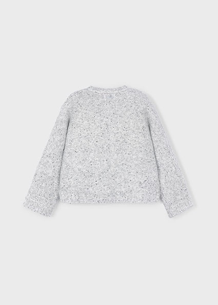 Un básico atemporal y acogedor para el armario de las más pequeñas. Este jersey de punto en color gris combina suavidad y calidez con un diseño actual. Destaca por su textura de ochos en las mangas y el cuerpo, aportando un toque clásico renovado. Su corte cómodo y ligeramente holgado lo convierte en la prenda perfecta para el día a día.