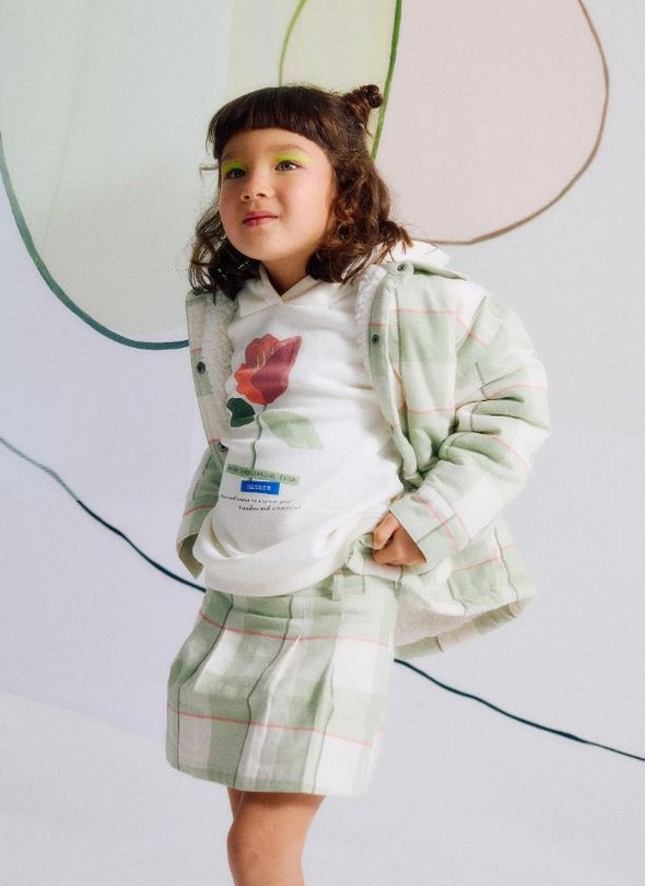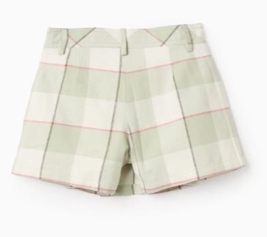Un diseño clásico con un toque moderno. Esta falda pantalón combina el estilo elegante de una falda con la comodidad de un pantalón corto. Su tejido suave de cuadros verdes y rosados la convierte en una prenda perfecta para cualquier ocasión: del cole a una tarde con amigas.