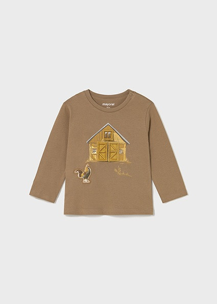 Esta camiseta de manga larga es perfecta para acompañar a tu peque en sus aventuras diarias. Confeccionada en algodón suave, asegura confort durante todo el día, mientras que su divertido estampado de granja añade frescura y estilo único.