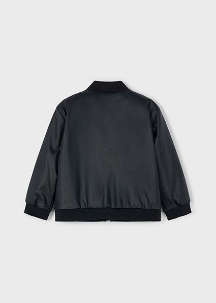 Chaqueta estilo bomber en color negro con acabado efecto piel.